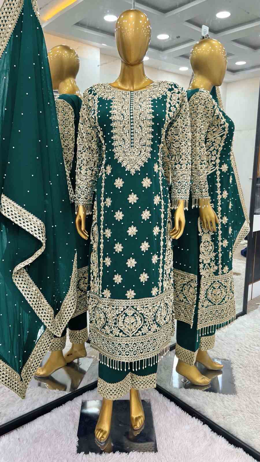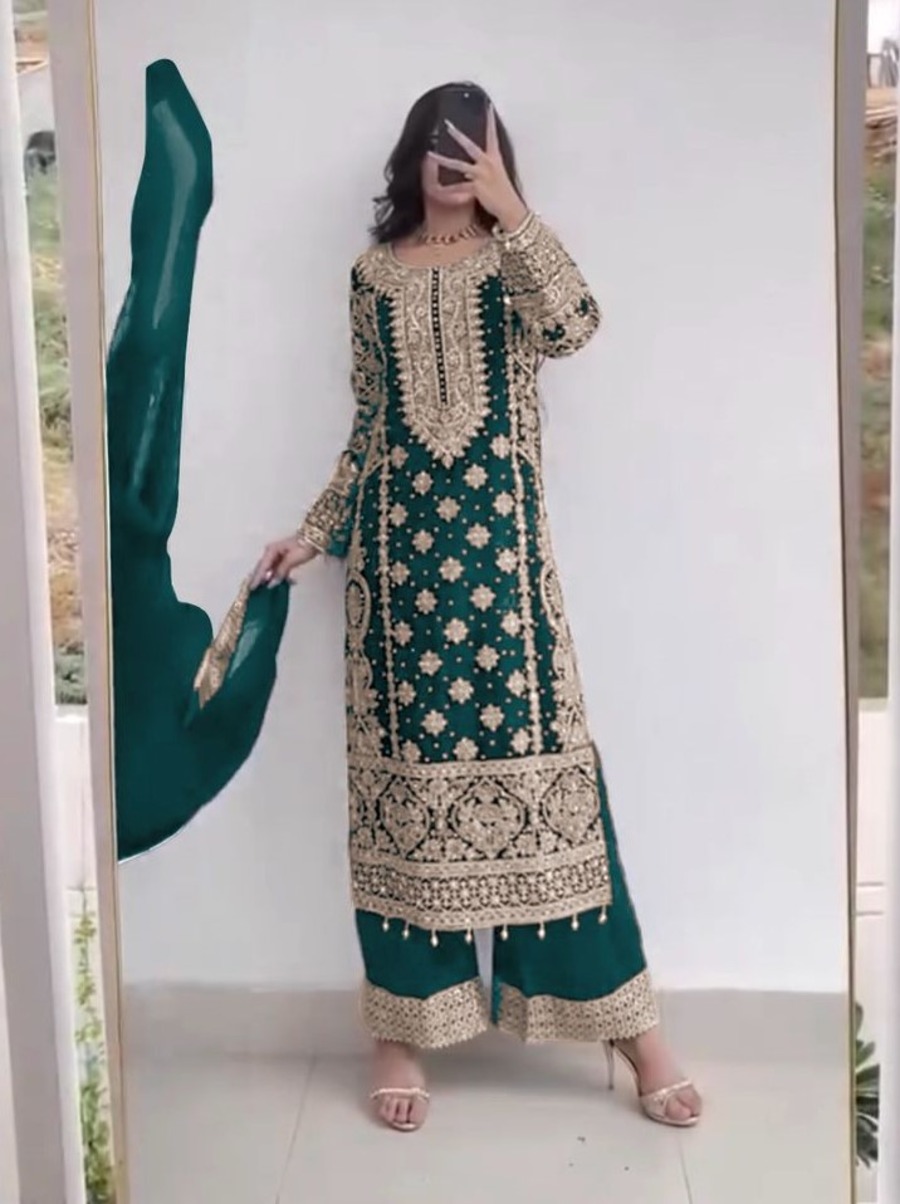TRENDING GEORGETTE EMBROIDERY SEQUENCE WORK TOP BOTTOM WITH DUPATTA GREEN