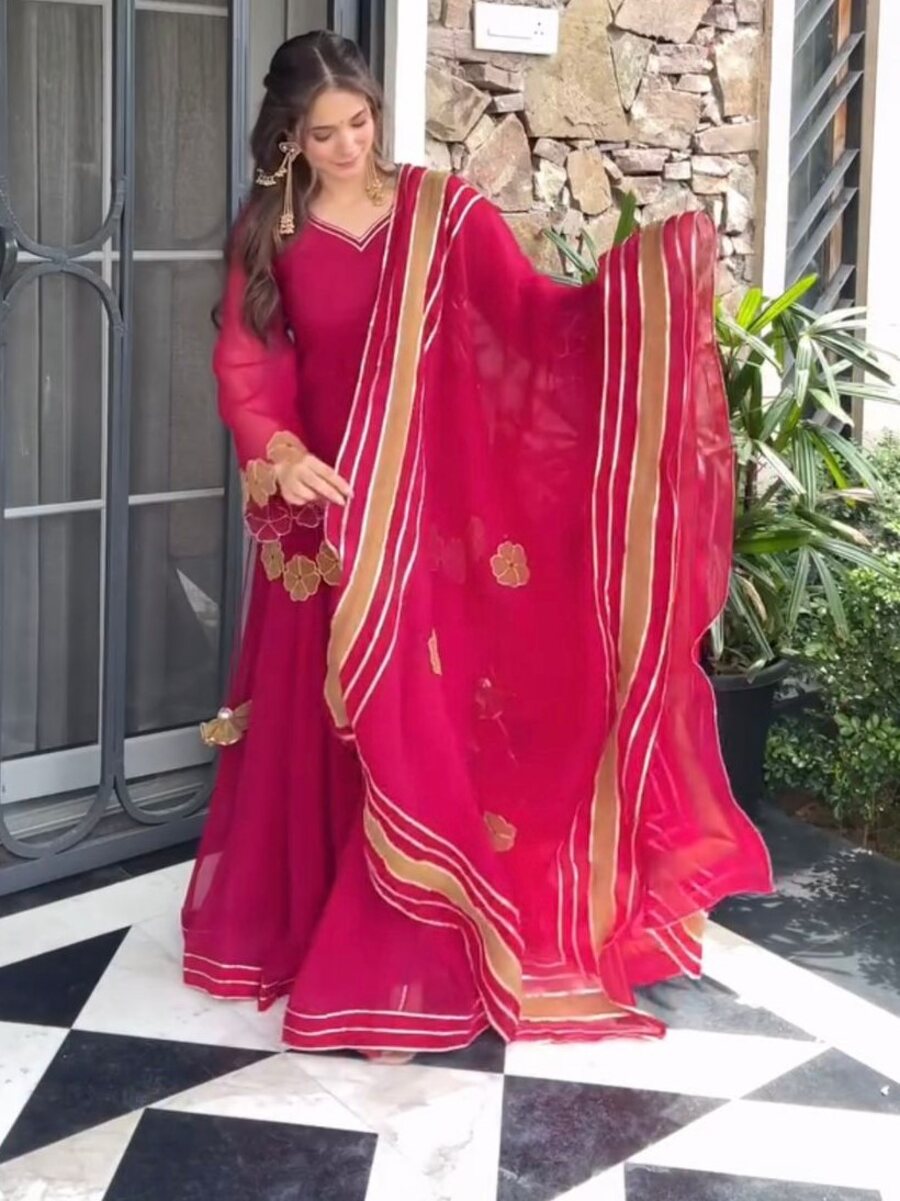 DUPATTA :- HEAVY GEORGETTE WITH 4 SIDE LACE