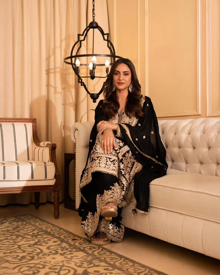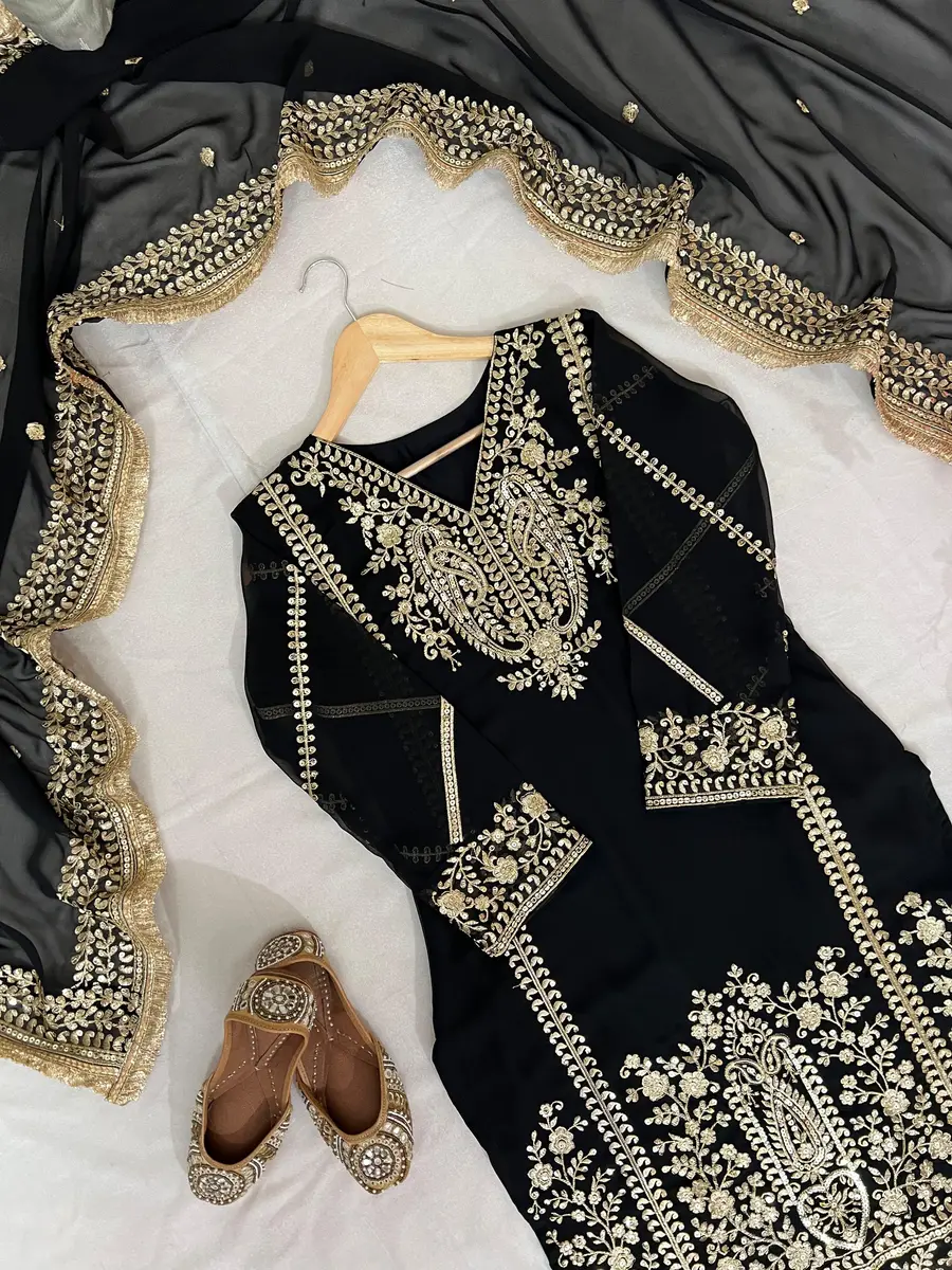 TRENDING GEORGETTE SEQUENCE EMBROIDERY WORK TOP PALAZZO WITH DUPATTA BLACK
