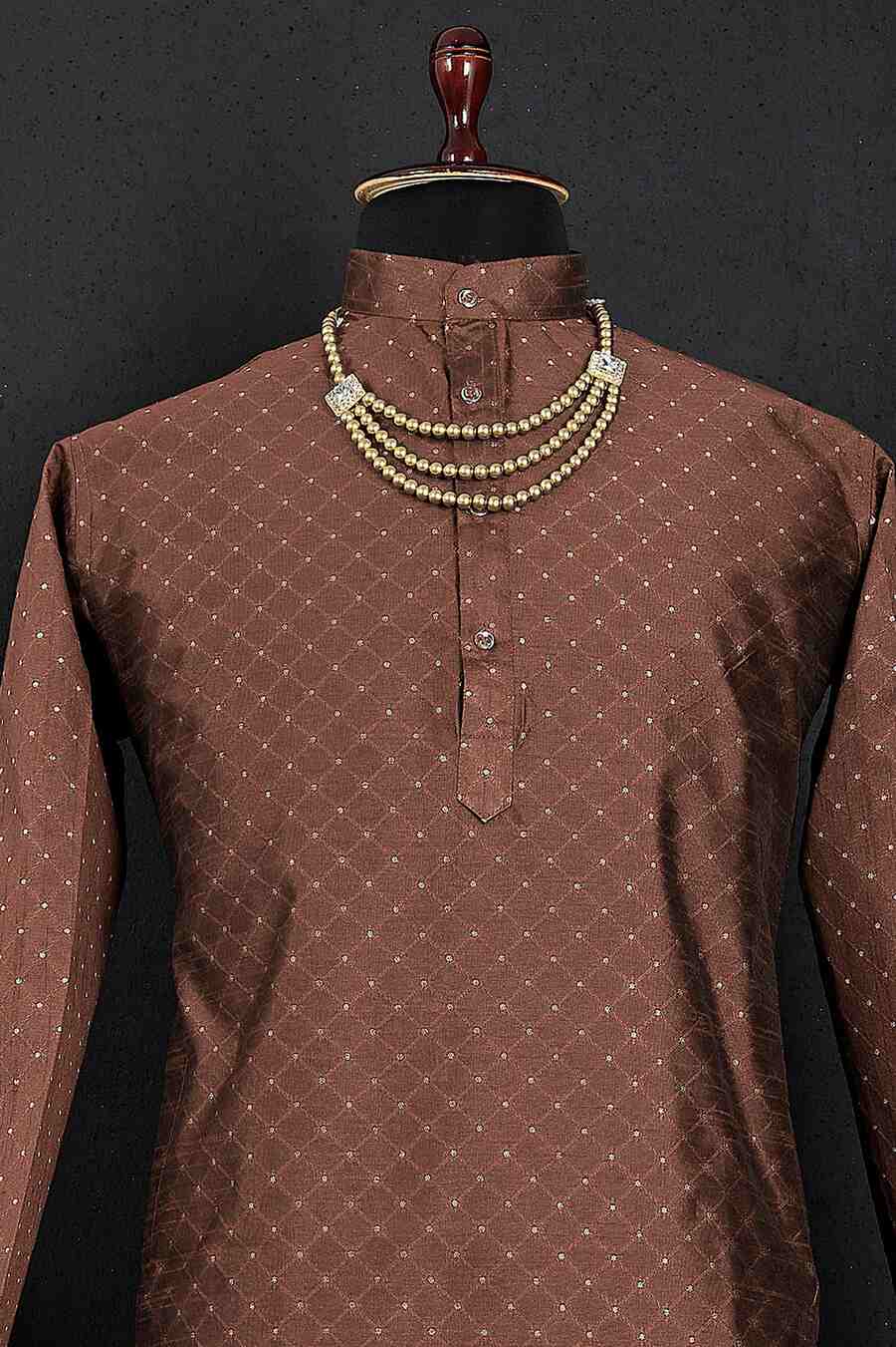 TRENDING JACQUARD PRINTED WORK MEN’S KURTA PAYJAMA BROWN