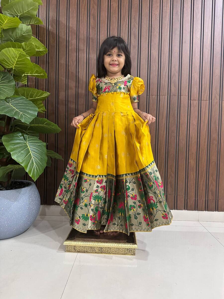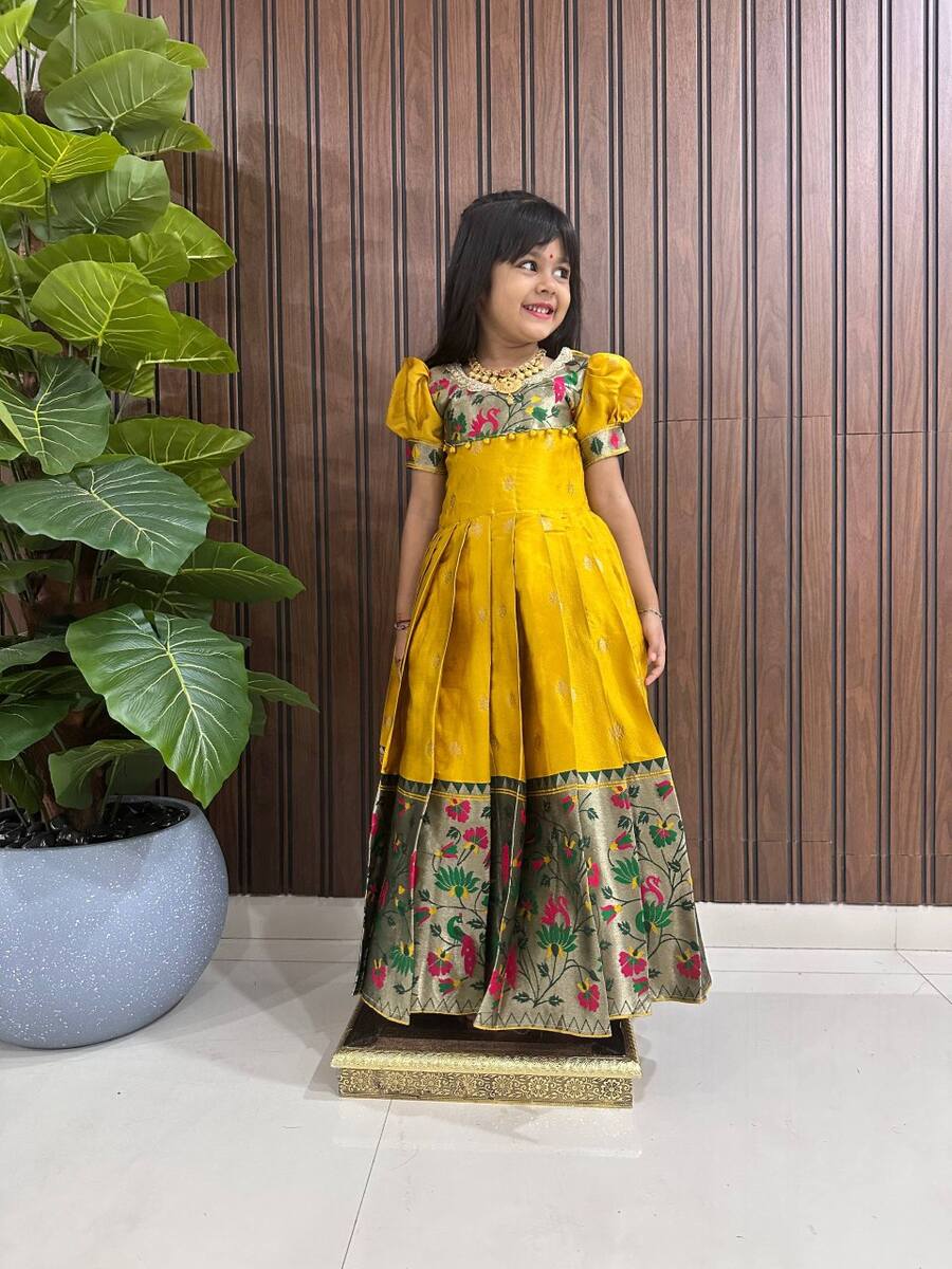 TRENDING KANJIVARAM SILK WEAVING WORK KID’S GOWN YELLOW
