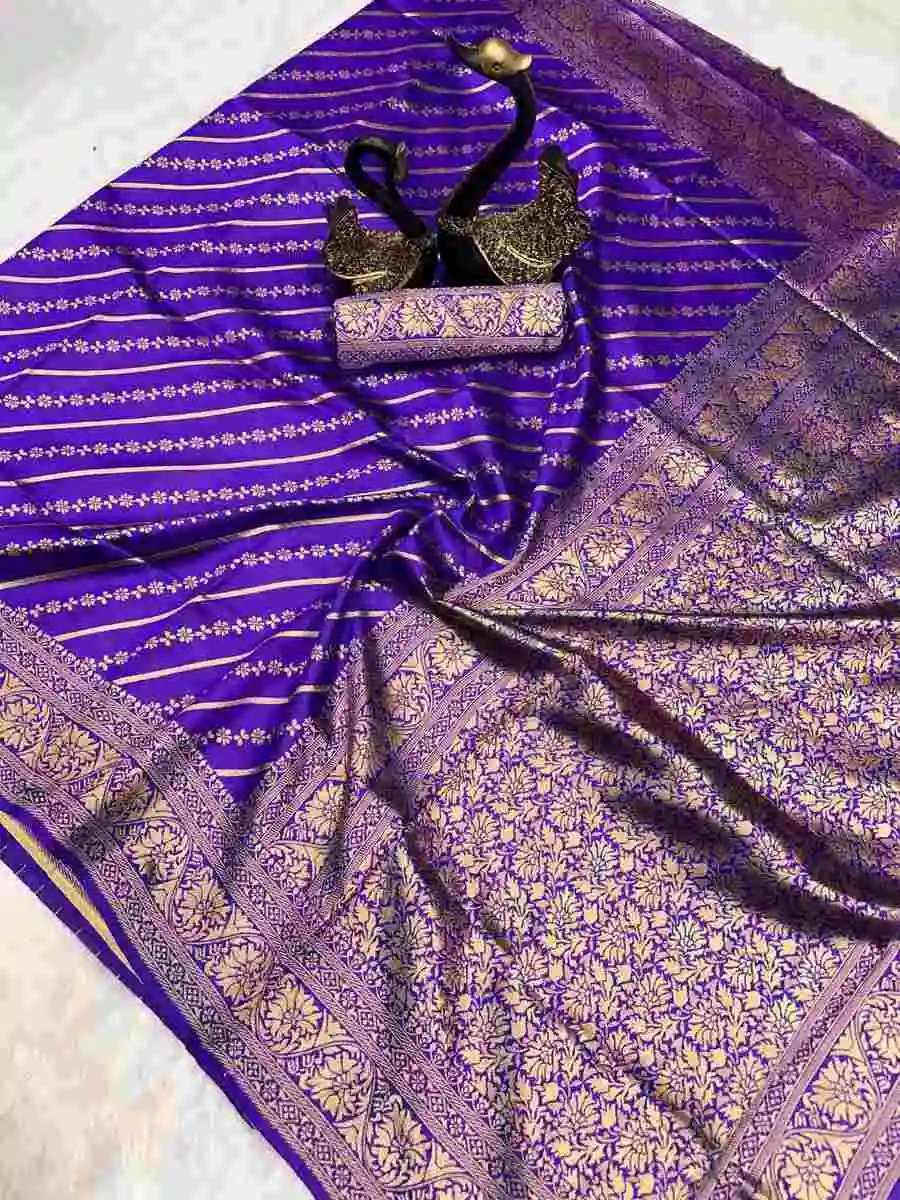 TRENDING LICHI SILK BANARASI WEAVING WORK SAREE WITH UNSTITCHED BLOUSE PURPLE