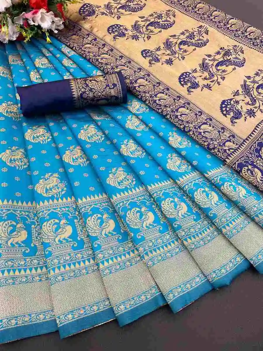 GOLDEN ZARI WEAVING JACQUARD SAREE WITH RICH PALLU AND BEAUTIFUL WEAVING BLOUSE