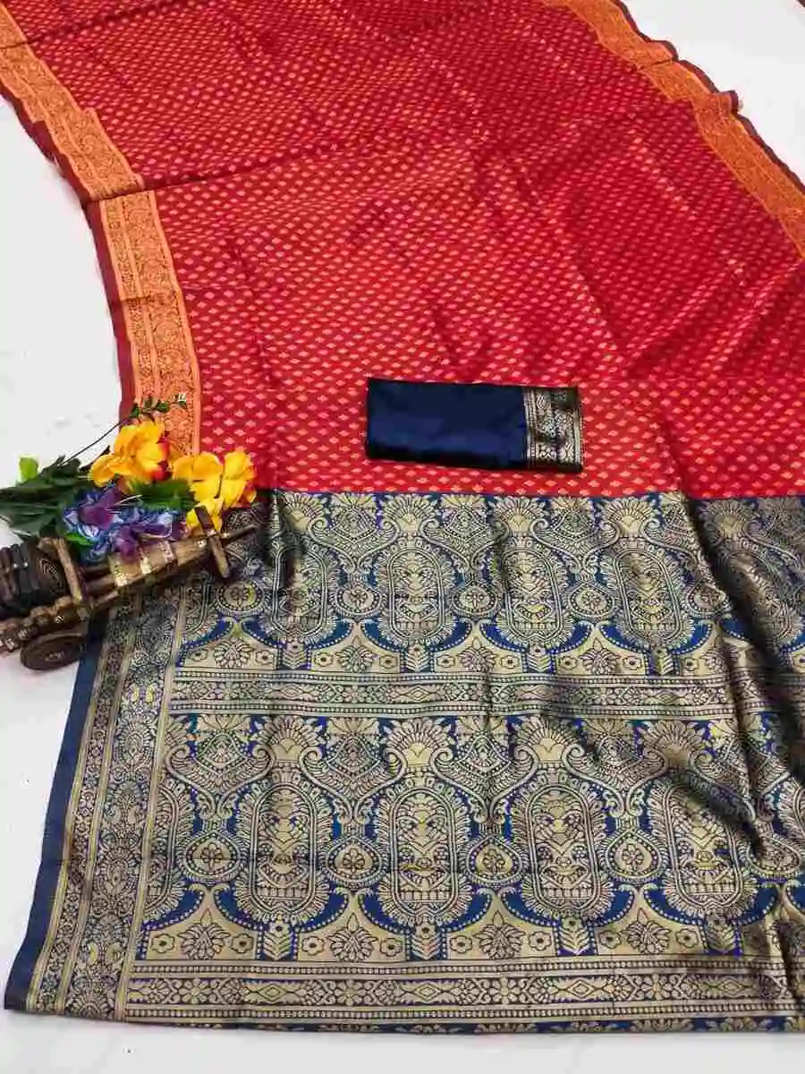 TRENDING LICHI SILK BANARASI WEAVING WORK SAREE WITH UNSTITCHED BLOUSE RED