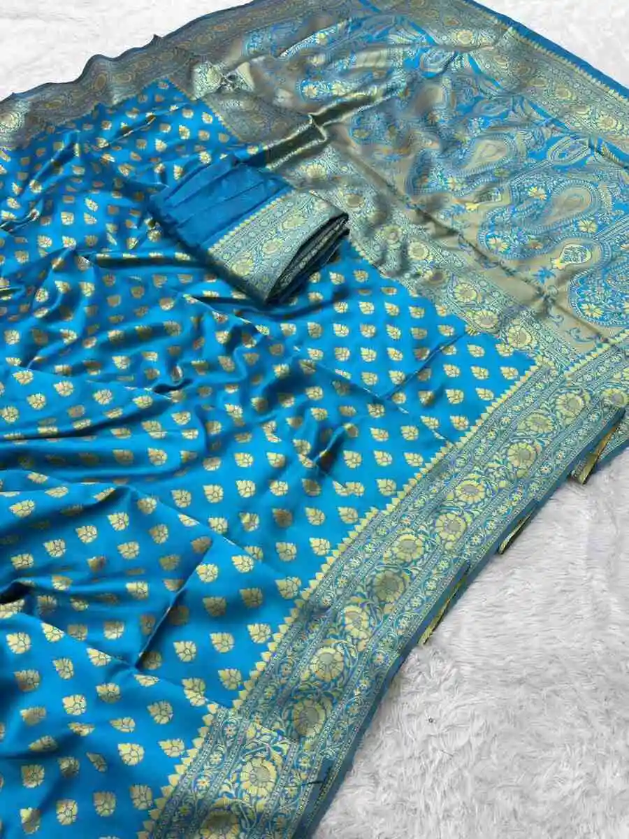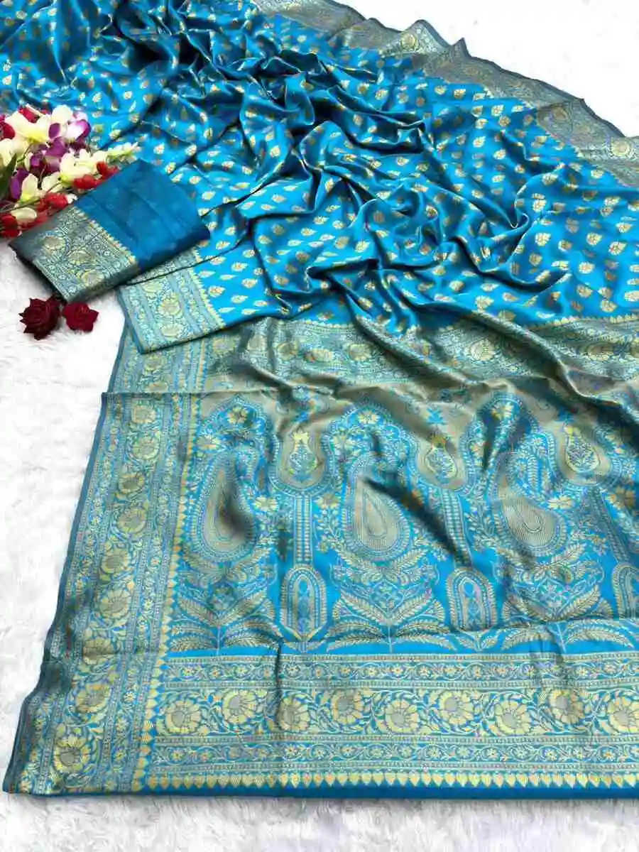 TRENDING LICHI SILK RICH PALLU & JACQUARD WORK SAREE WITH UNSTITCHED BLOUSE RAMA