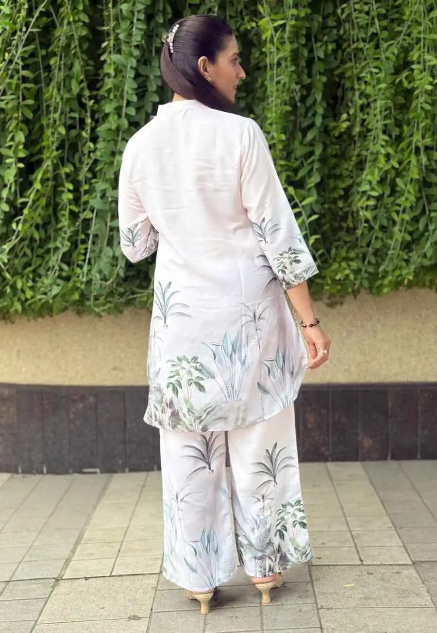 TRENDING POLY RAYON DIGITAL PRINT WORK CO-ORD SET GREEN AND OFF WHITE