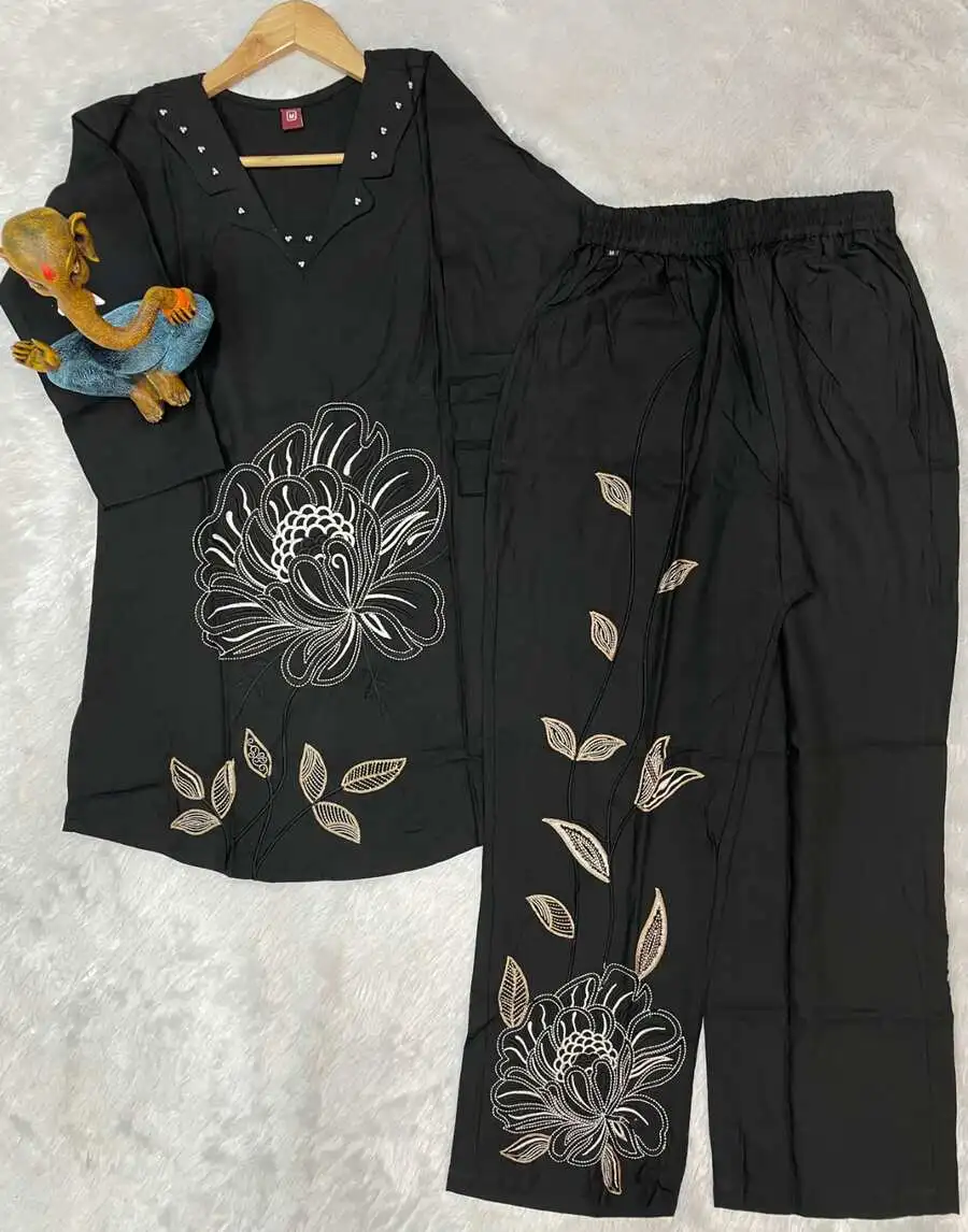 TRENDING RAYON MULTI EMBROIDERY THREAD WORK WITH HAND WORK CO-ORD SET BLACK