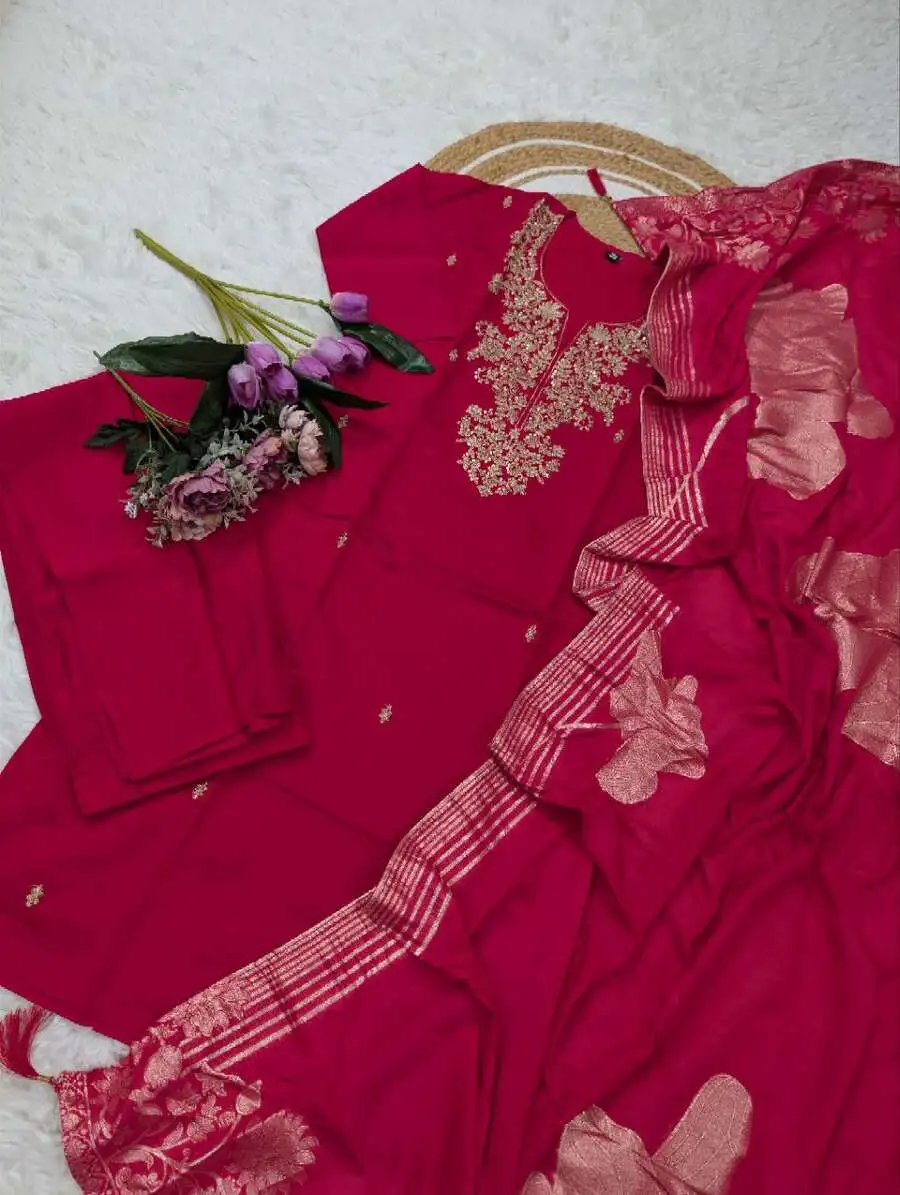 TRENDING ROMAN SILK SEQUENCE CODING EMBROIDERY WORK TOP BOTTOM WITH DUPATTA RANI