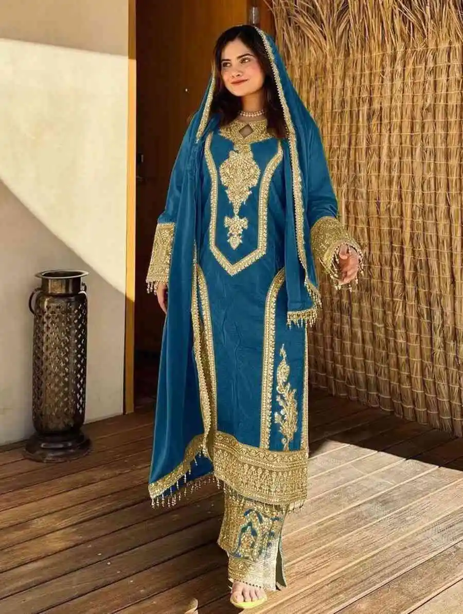 TOP FABRIC : HEAVY PURE 9000 VISCOUS VELVET WITH 5MM SEQUENCE EMBROIDERY WORK WITH FULL-SLEEVS