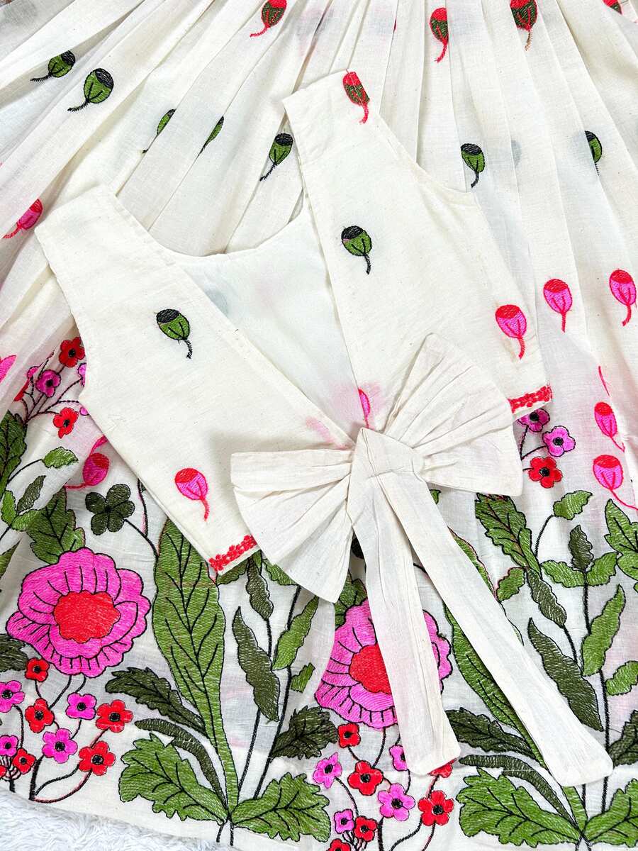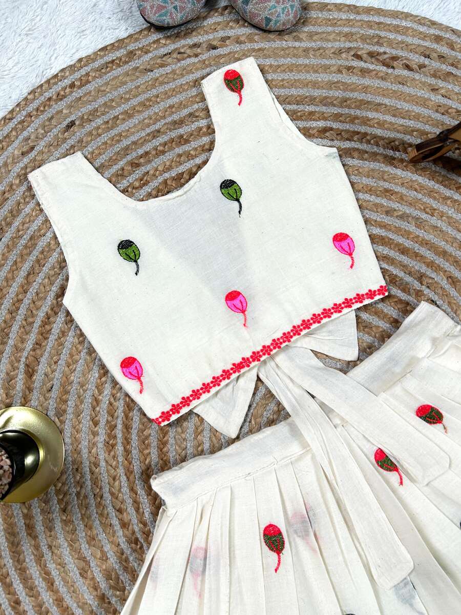 TRENDING SOFT COTTON EMBROIDERY WORK KID’S LEHENGA CHOLI WHITE