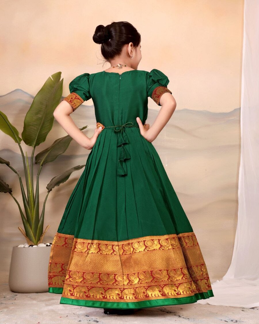TRENDING TAFFETA SILK JACQUARD WORK KID’S TOP LEHENGA GREEN