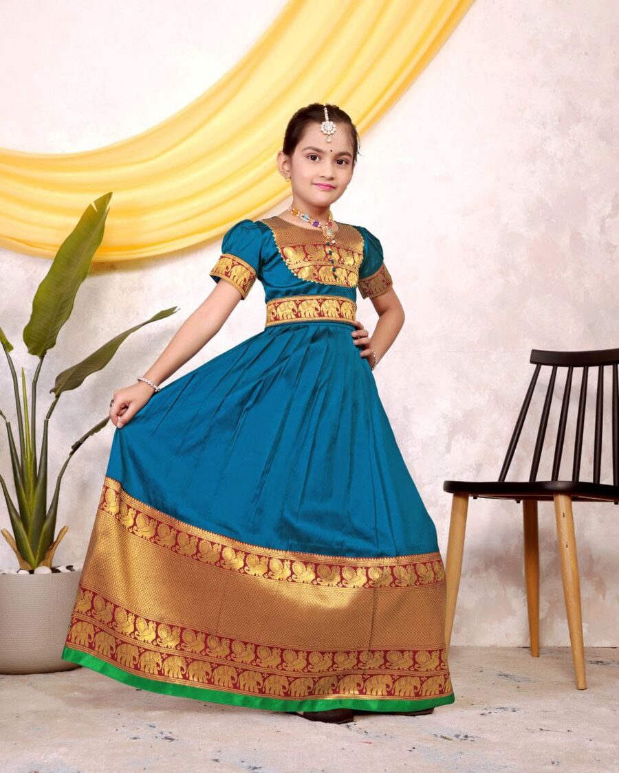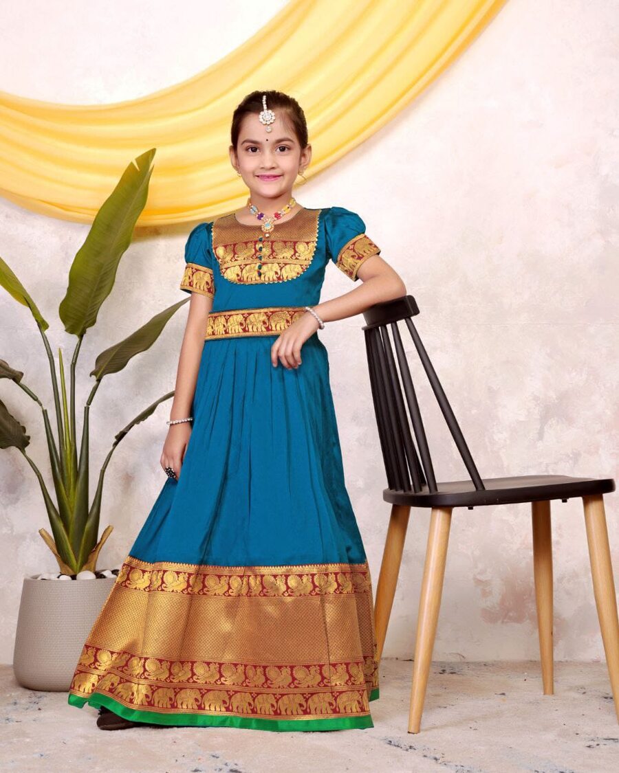 TRENDING TAFFETA SILK JACQUARD WORK KID’S TOP LEHENGA SKY