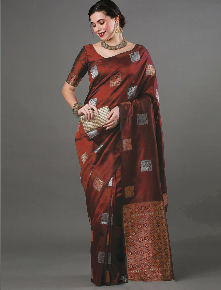 WEDDING WEAR BANARASI SILK ZARI WEAVING WORK SAREE WITH UNSTITCHED BLOUSE MAROON