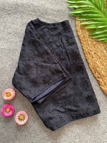 SAREE WITH STITCHED BLOUSESKU: 73640-2 - FANCY KHADI COTTON EMBROIDERY WORK STITCHED BLOUSE OFF WHITE ₹554.00
