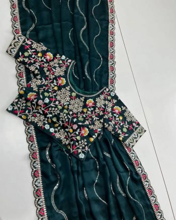SAREE : PURE ORGANZA SILK FABRIC WITH SEQUENCE EMBROIDERY WITH BEAUTIFUL ARC CUTTING BORDER