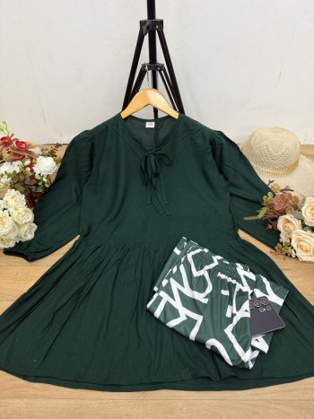 WORK : LACE BORDERSKU: 79678-3 - NEW ARRIVAL RAYON DIGITAL PRINT WORK TOP PALAZZO SET GREEN ₹667.00