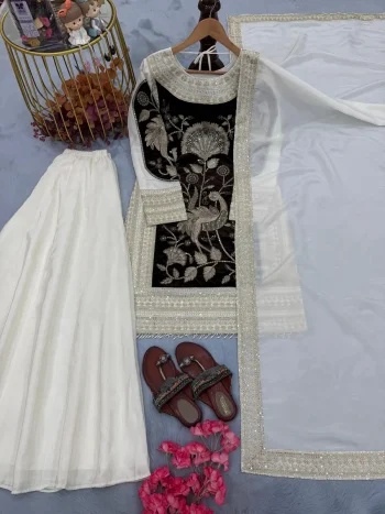 PACKAGE CONTAIN :- GOWN WITH DUPATTASKU: 75966-3 - FABULOUS GEORGETTE PLAIN TOP PALAZZO WITH DUPATTA BLACK ₹902.00