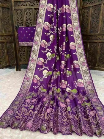 - DESIGNER DOLA SILK ZARI MEENAKARI WOVEN PALLU WITH HEAVY WOVEN BORDER WORK SAREE WITH UNSTITCHED BLOUSE PURPLE ₹1,072.00