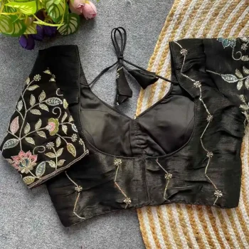 LINING : PURE INDO COTTONSKU: 82934-1 - DESIGNER ZC MULTI SEQUENCE WORK STITCHED BLOUSE BLACK ₹649.00