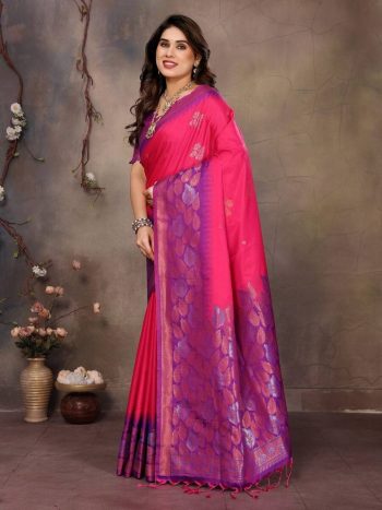 FABRIC : ASSAM-SILKSKU: 80405 - DESIGNER BANARASI SILK COPPER ZARI FLOWER MOTIFS & WOVEN BORDER WORK SAREE WITH UNSTITCHED BLOUSE RANI ₹1,527.00