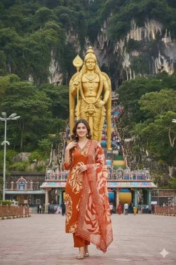 SAREE WITH UNSTITCHED BLOUSESKU: 80458-3 - RICH LOOK SLUB RAYON DIGITAL PRINTED PAPER MIRROR EMBROIDERY WORK TOP BOTTOM WITH DUPATTA ORANGE ₹858.00
