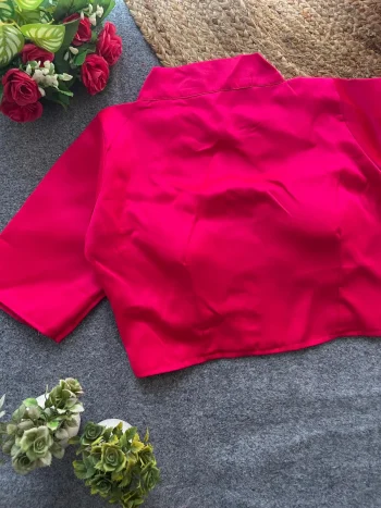 SAREE + STITCHED BLOUSESKU: 80935-4 - FANCY MALAI SATIN PLAIN STITCHED BLOUSE RANI ₹415.00